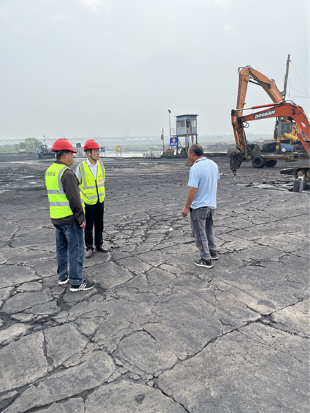 圖為:淮河物流事業(yè)部總經(jīng)理徐新懷在舜龍碼頭檢查工作,對(duì)節(jié)日期間堅(jiān)守崗位的業(yè)務(wù)員周忠平表示慰問(wèn),并提出工作要求。
