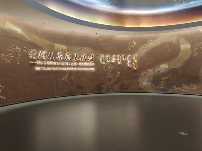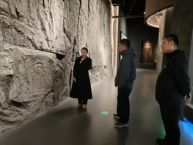 在博物院展廳內(nèi),黨員們循著“黃河從草原上流過——鄂爾多斯歷史文化陳列”的脈絡沉浸式參觀。從“河套人頭蓋骨”見證的遠古文明,到“朱開溝中華第一銅劍”承載的早期冶金技術(shù),從“鄂爾多斯青銅器”展現(xiàn)的草原絲路風采,到VR技術(shù)復原的秦直道盛景,文物與科技的融合讓大家直觀感受了黃河文化、草原文化與農(nóng)耕文化在鄂爾多斯的碰撞交融 。在“桌子山太陽神巖畫”等文物前,黨員們駐足細品,深入了解鄂爾多斯地區(qū)在多民族交往交流交融中的重要歷史地位,進一步堅定了文化自信。